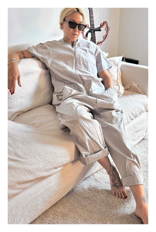 JUMPSUIT: GREY SHIRTING/ MEDIUM