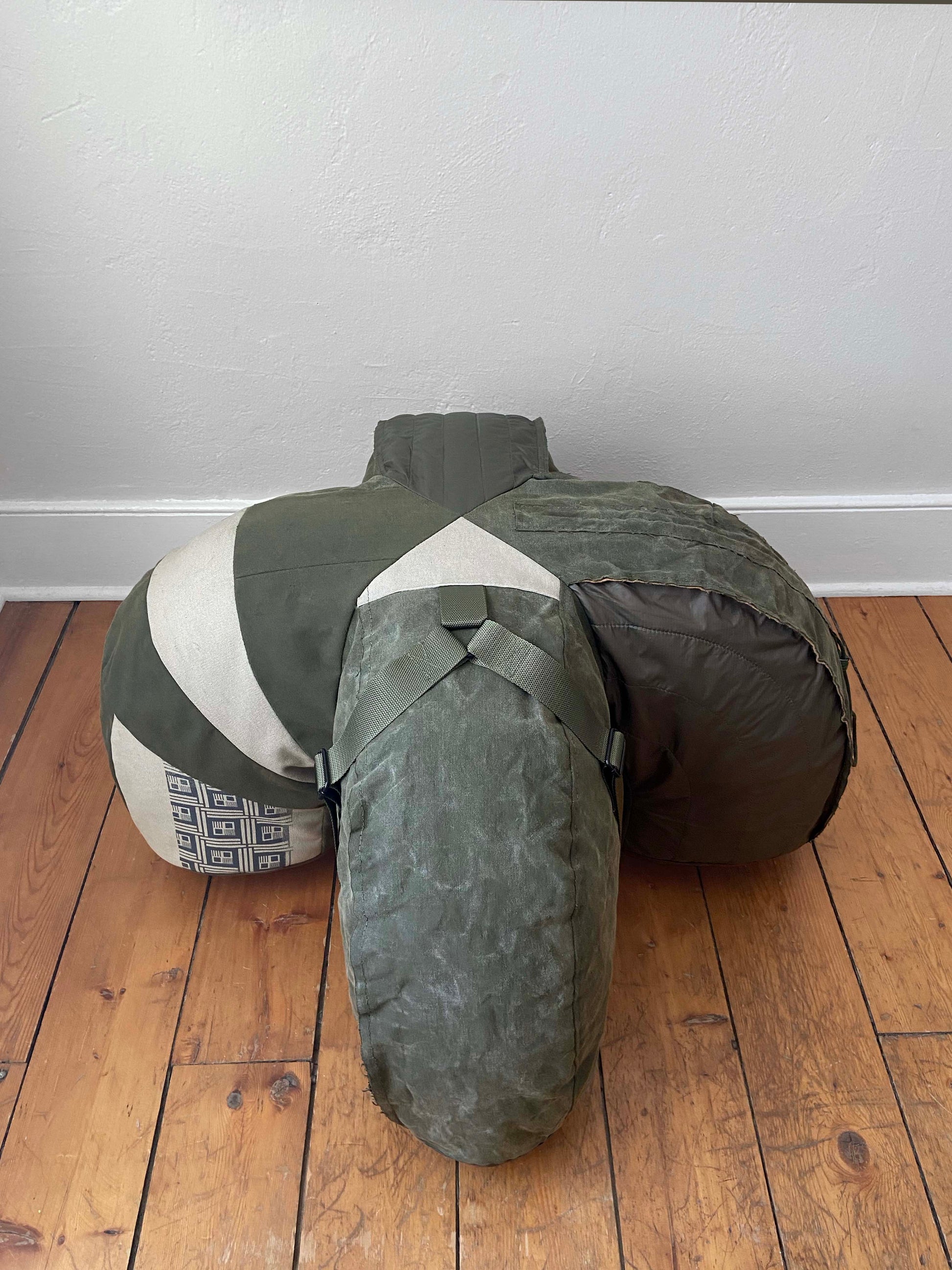 WAXED ARMY CANVAS AND MIXED FABRICATION UPHOLSTERY